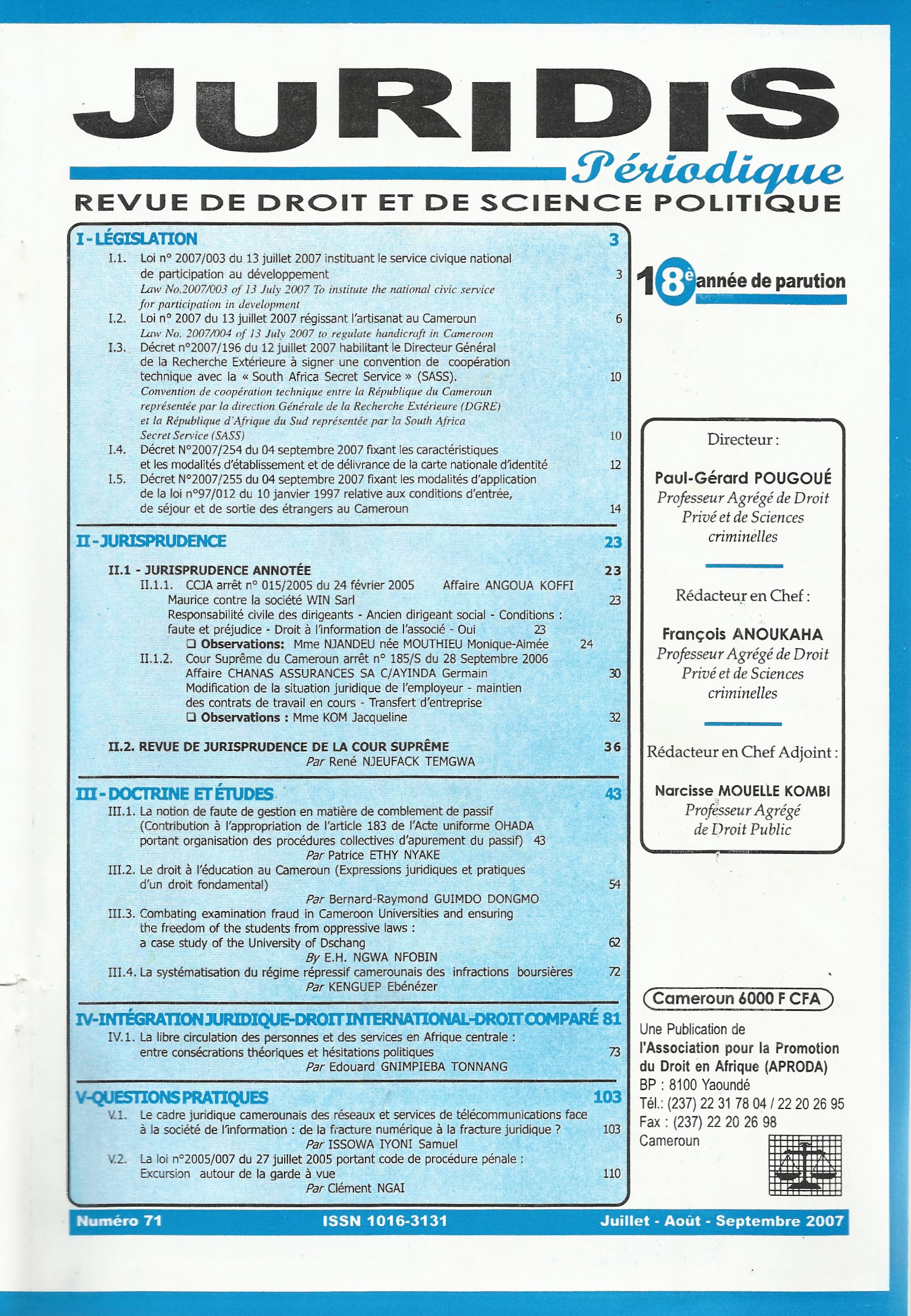 JURIDIS PERIODIQUE N°70 Avril – Mai – Juin 2007 Gallery JURIDIS PERIODIQUE N°70 Avril – Mai – Juin 2007 Parutions JURIRIS Périodique JURIDIS PERIODIQUE N°70 Avril – Mai – Juin 2007 martin2024-07-23T17:36:13+02:0023 juillet 2024|Parutions JURIRIS Périodique|0 Comments Read More