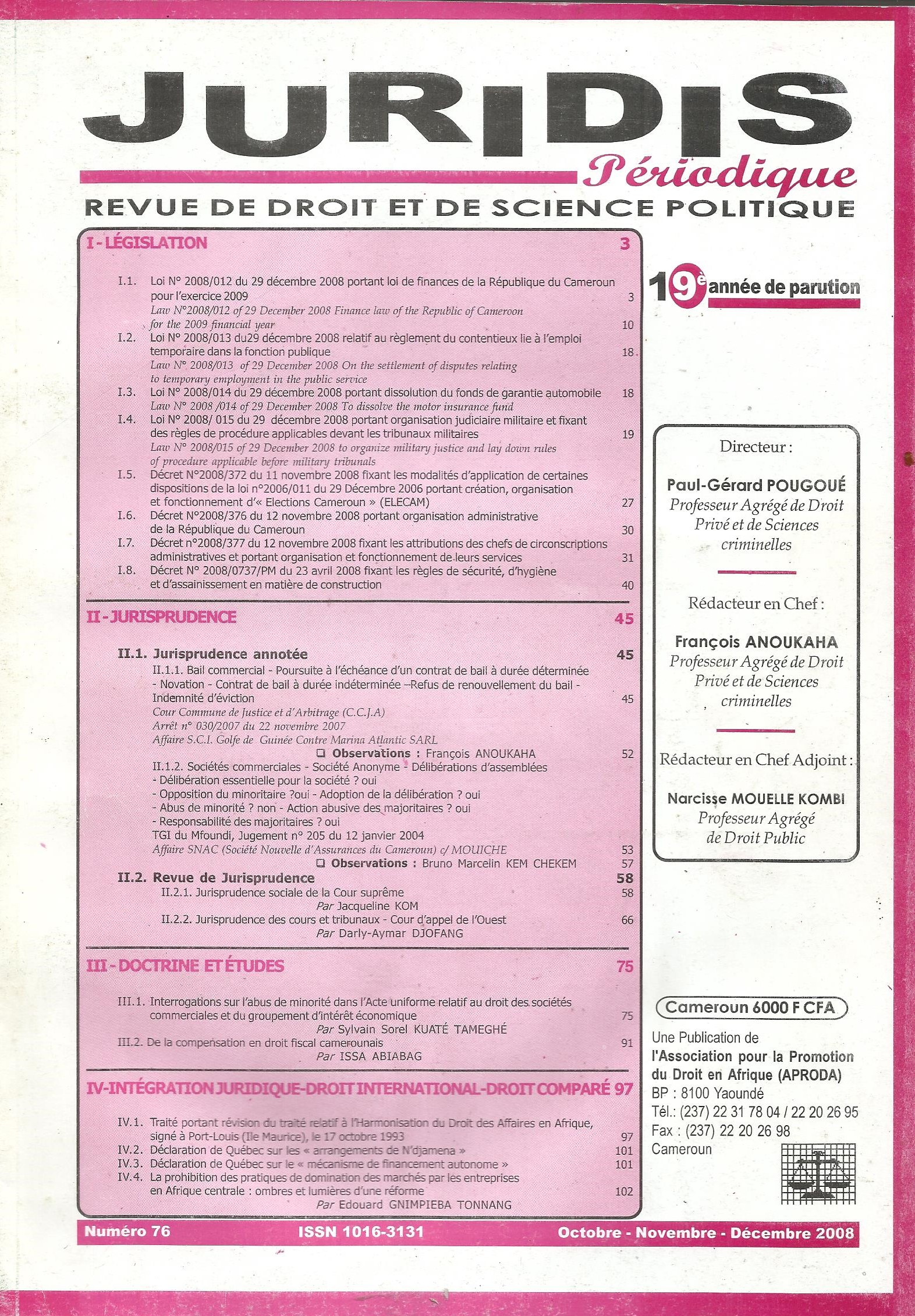 JURIDIS PERIODIQUE N°76 Octobre – Novembre – Décembre 2008 Gallery JURIDIS PERIODIQUE N°76 Octobre – Novembre – Décembre 2008 Parutions JURIRIS Périodique JURIDIS PERIODIQUE N°76 Octobre – Novembre – Décembre 2008 martin2024-07-23T17:58:11+02:0023 juillet 2024|Parutions JURIRIS Périodique|0 Comments Read More