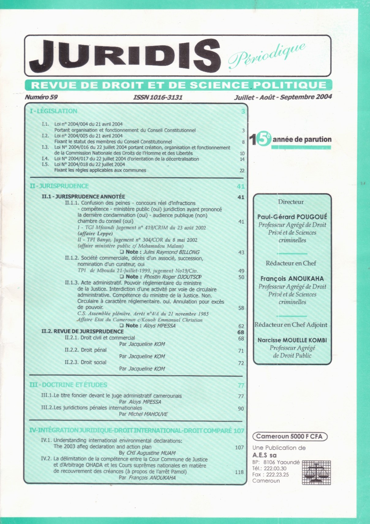JURIDIS PERIODIQUE N°59 juillet – Août – Septembre 2004 Gallery JURIDIS PERIODIQUE N°59 juillet – Août – Septembre 2004 Parutions JURIRIS Périodique JURIDIS PERIODIQUE N°59 juillet – Août – Septembre 2004 martin2024-07-23T14:01:39+02:0023 juillet 2024|Parutions JURIRIS Périodique|0 Comments Read More