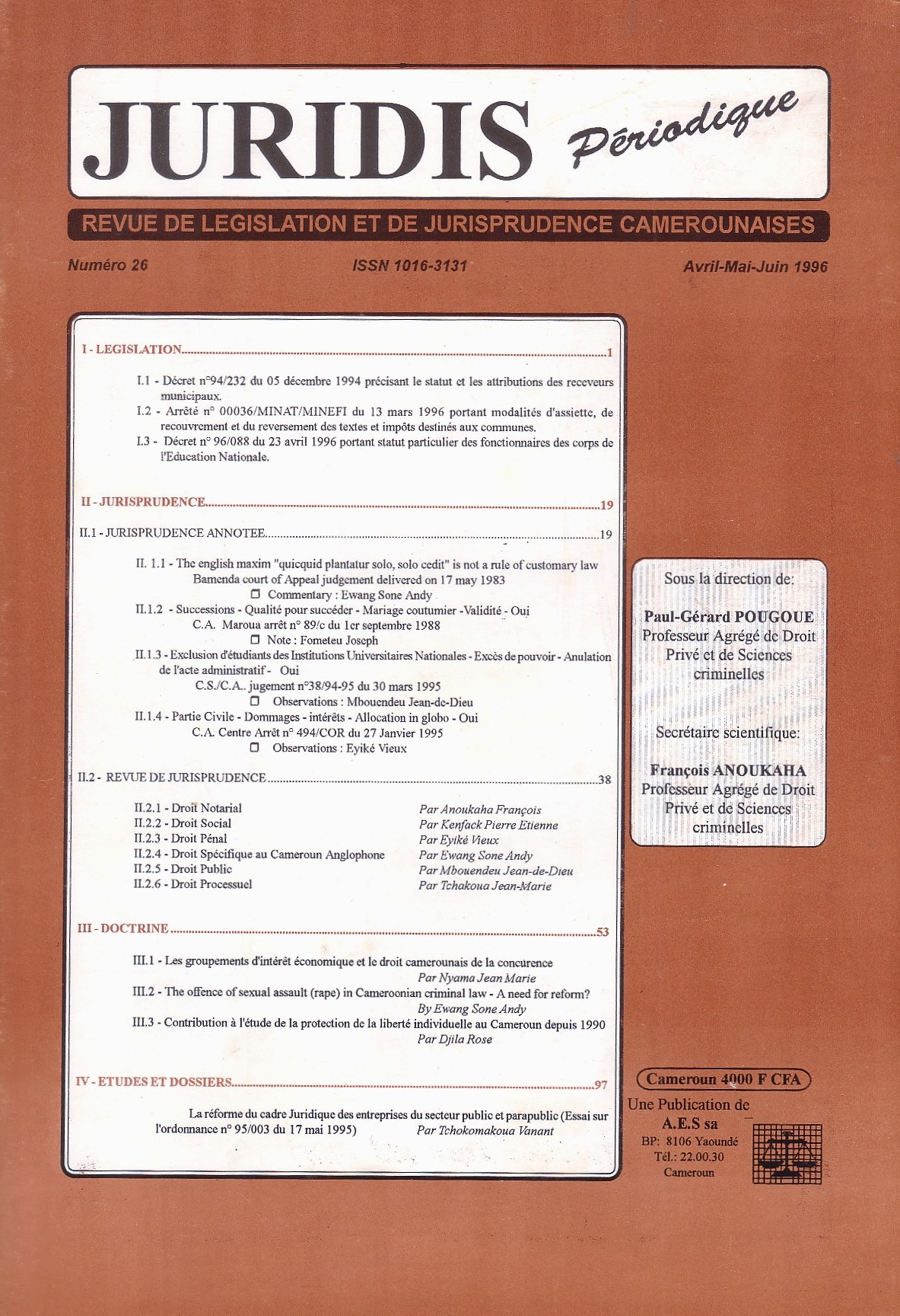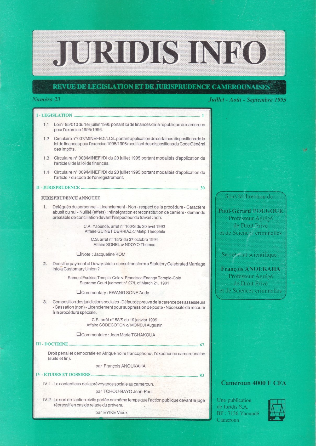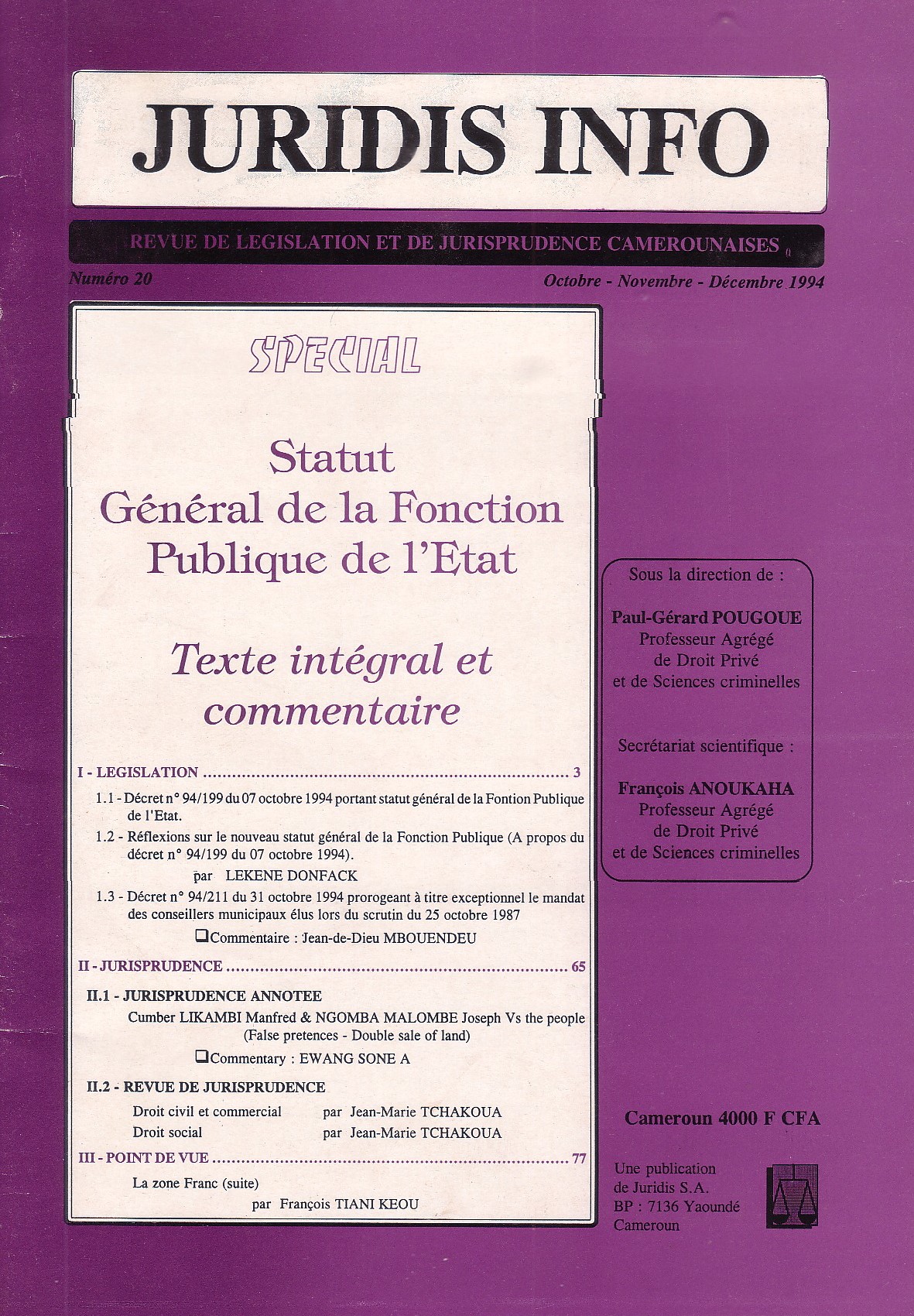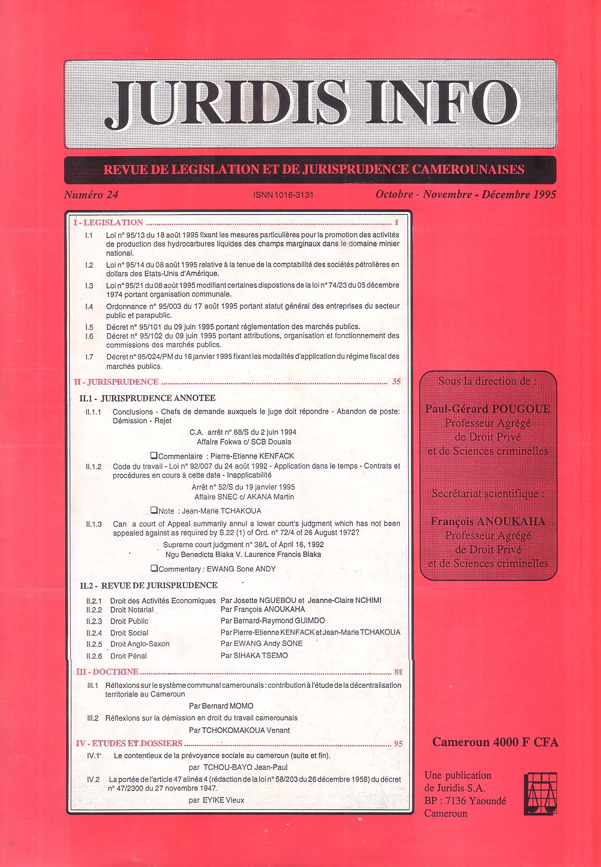 Nous dernières publications dans la revue JURIDIS Périodiques concernant la législation, jurisprudence, étude et doctrines, droit…